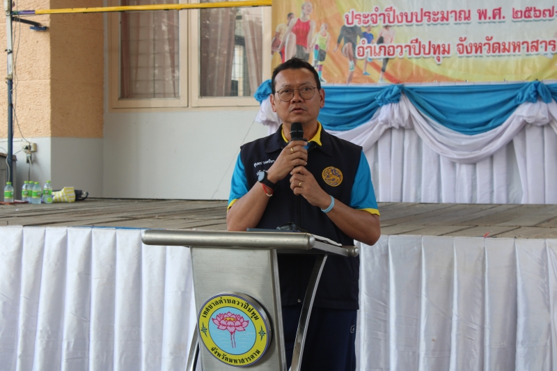 นายสุนทร วงศรีษา ปลัดอำเภอ หน.กลุ่มบริหารงานปกครอง เปิดกิจกรรมการขับเคลื่อนการส่งเสริมการออกกำลังกายและกีฬา เพื่อมวลชนให้เป็นวิถีชีวิตในระดับอำเภอ โดยมี นายกฤษณ์ธนพันธ์ จันทเขตร์ นายกเทศมนตรีตำบลวาปีปทุม กล่าวรายงานวัตถุประสงค์โครงการ พร้อม คณะผู้บริหาร สมาชิกสภาเทศบาล หัวหน้าส่วนราชการในอำเภอวาปีปทุม ปลัดเทศบาล หัวหน้าส่วนเทศบาล ข้าราชการ พนักงาน ลูกจ้างเทศบาล อสม.เทศบาล และประชาชนที่สนใจ เข้าร่วมกิจกรรม