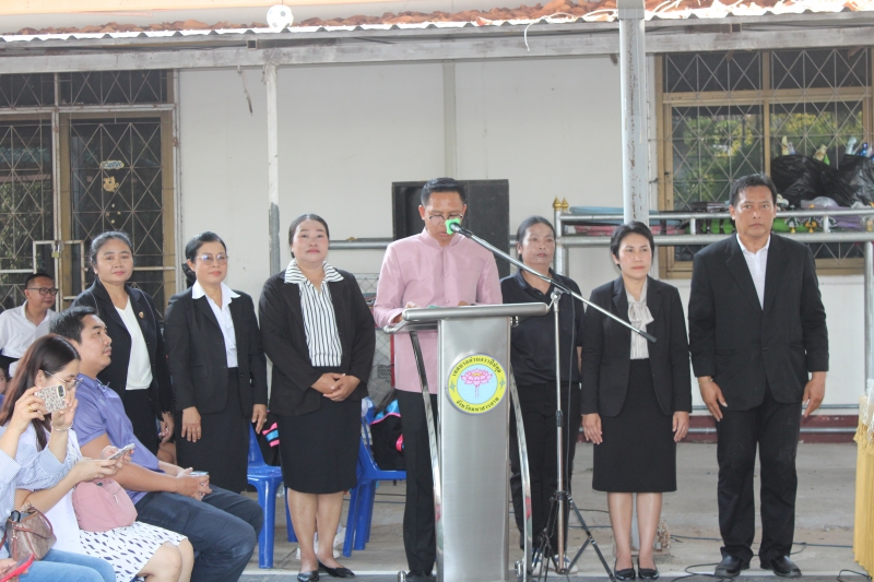 เข้าแถวเคารพธงชาติ และพบปะพูดคุย ข้อราชการก่อนปฏิบัติงาน